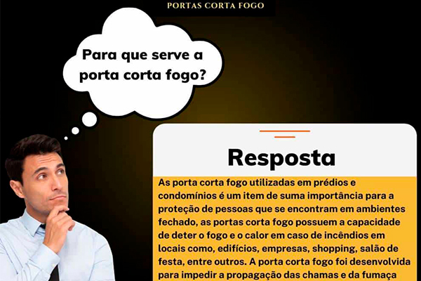 As porta corta fogo utilizadas em prédios e condomínios é um item de suma importância para a proteção de pessoas que se encontram em ambientes fechados, as portas corta fogo possuem a capacidade de deter o fogo, o calor e a fumaça em caso de incêndios em locais como, edifícios, empresas, shopping, salão de festa, entre outros.